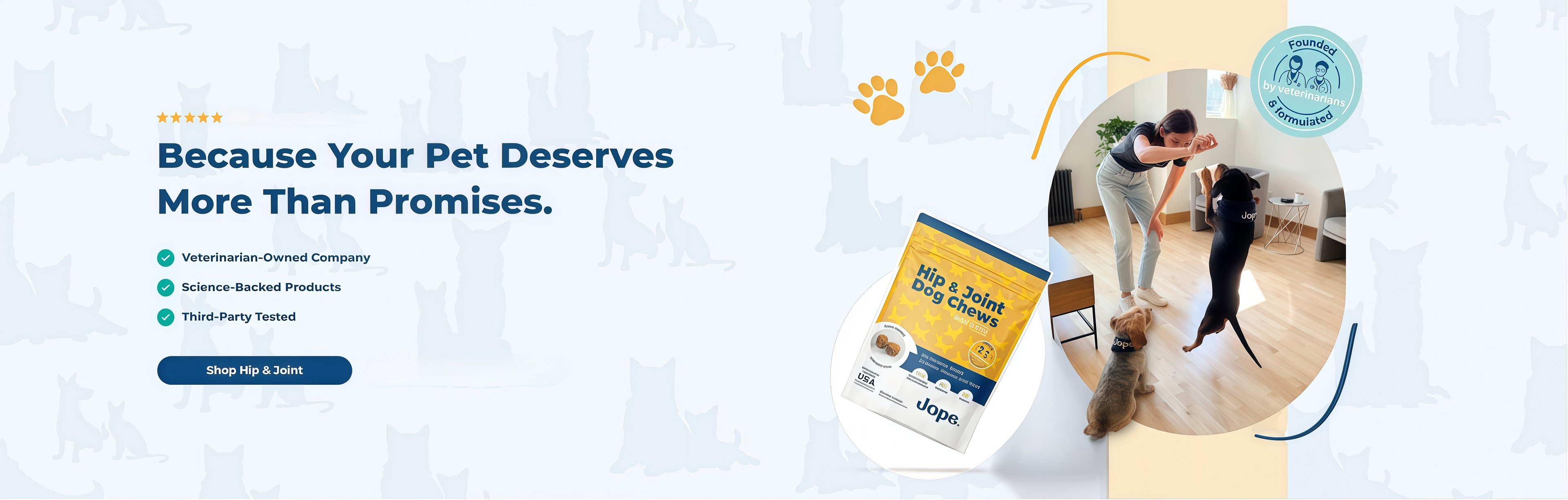 Jope was born from both personal and professional experience. We were tired of seeing pups and cats let down by products that failed to deliver real results.